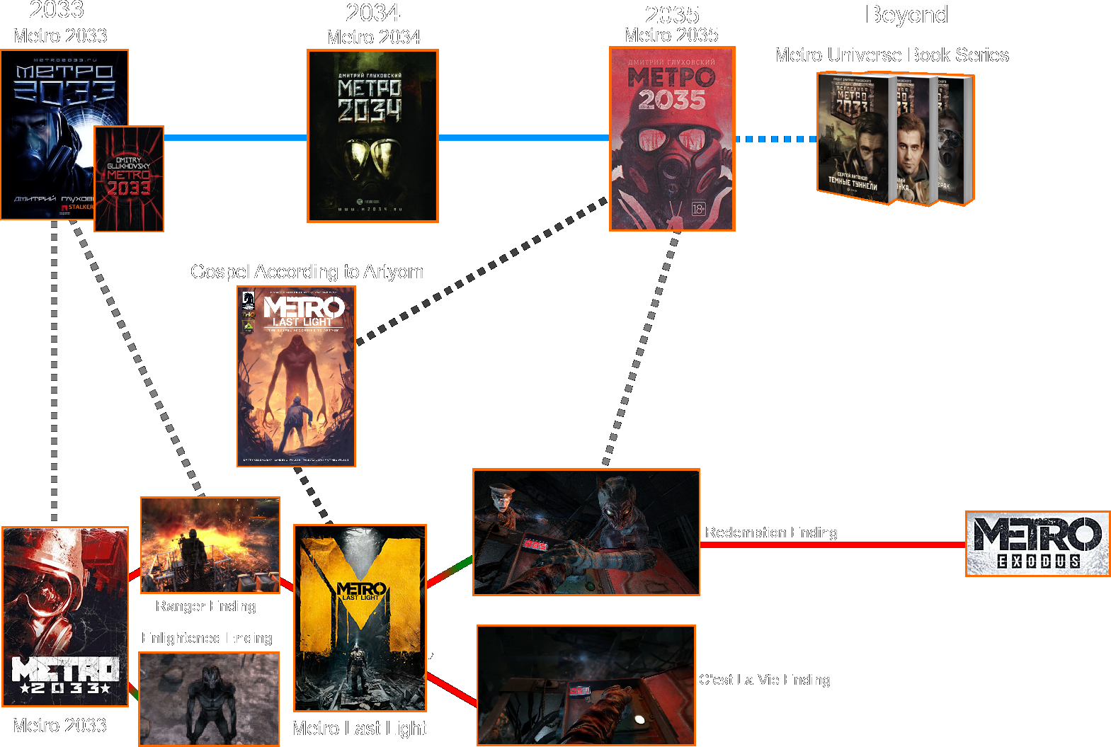 Today marks the 10th anniversary of metro 2033's release, and to celebrate 4a has put together a neat timeline in the form of a metro map, for both books and games, and revealed a little more. Metroid ii contributed to the series' development by providing a set of new weapons and items and also revealed some details about the chozo. Last light picks up just a year after the events of the first game, in an original timeline envisioned by dmitry glukhovsky exclusively for the game series (sorry, metro book devotees).